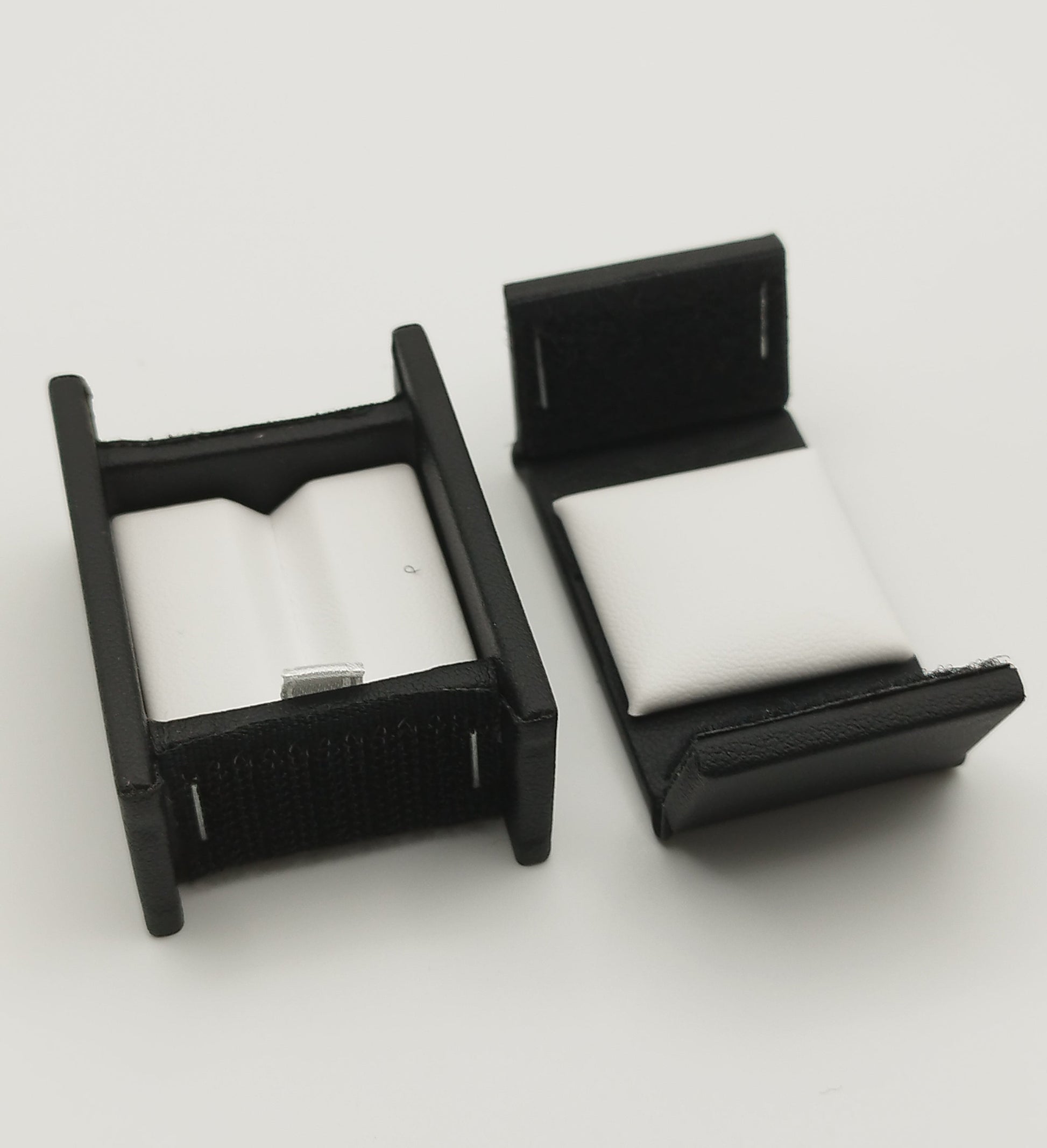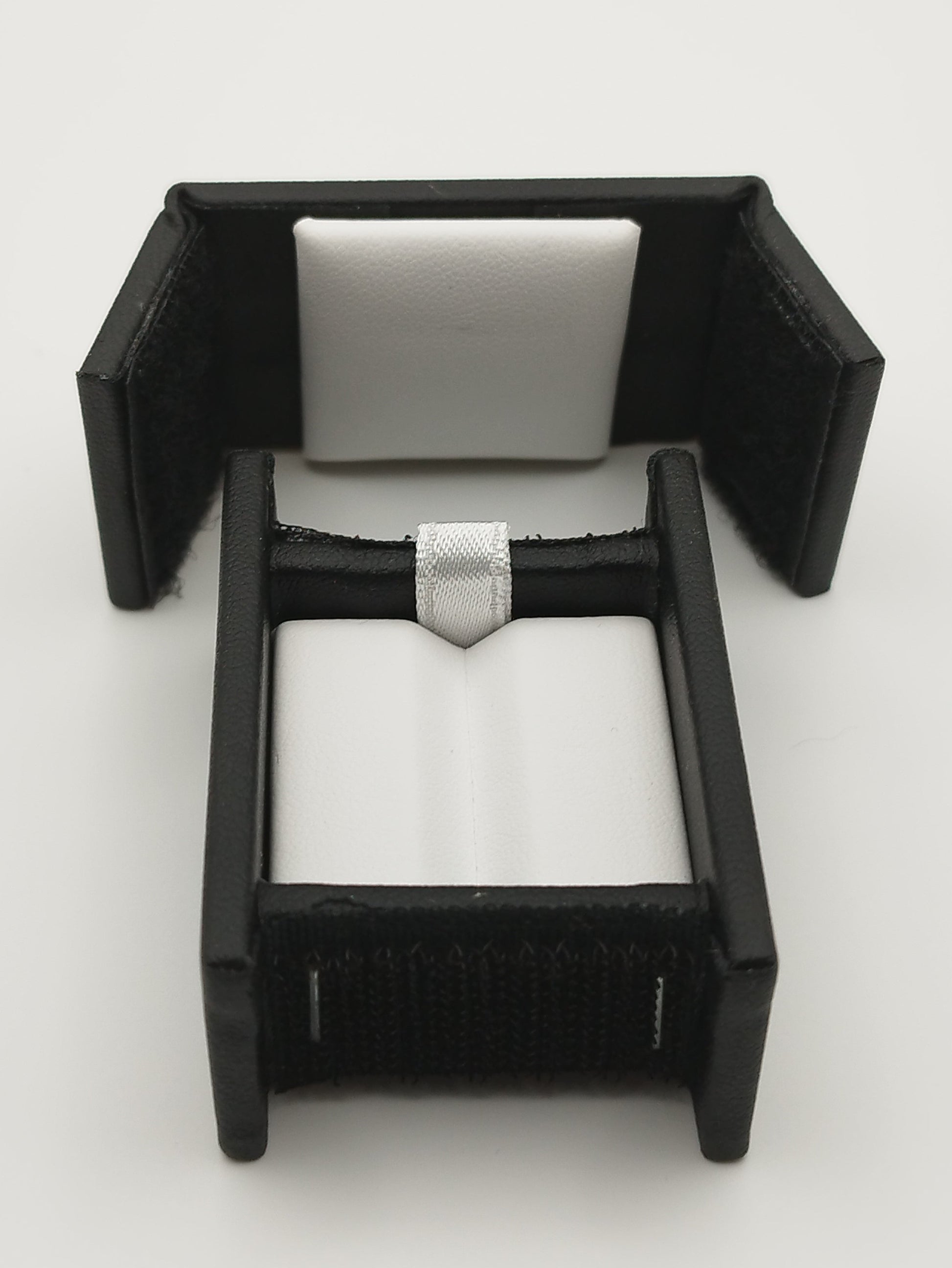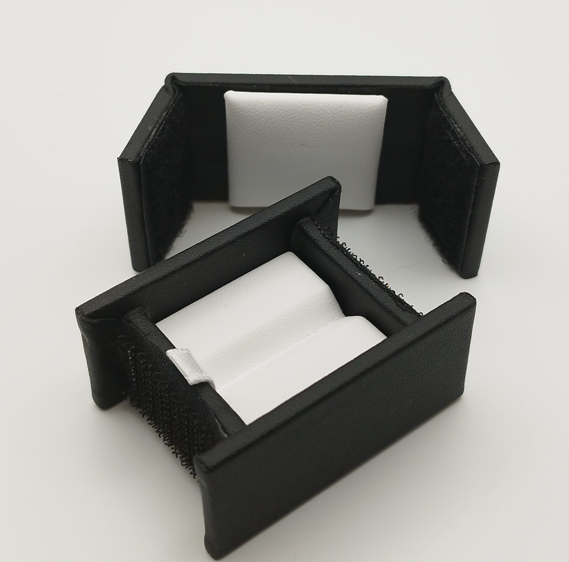 Rectangular leather-like black box with Velcro closure and white bifurcated pad (5,4 * 4 * 2,5 cm)