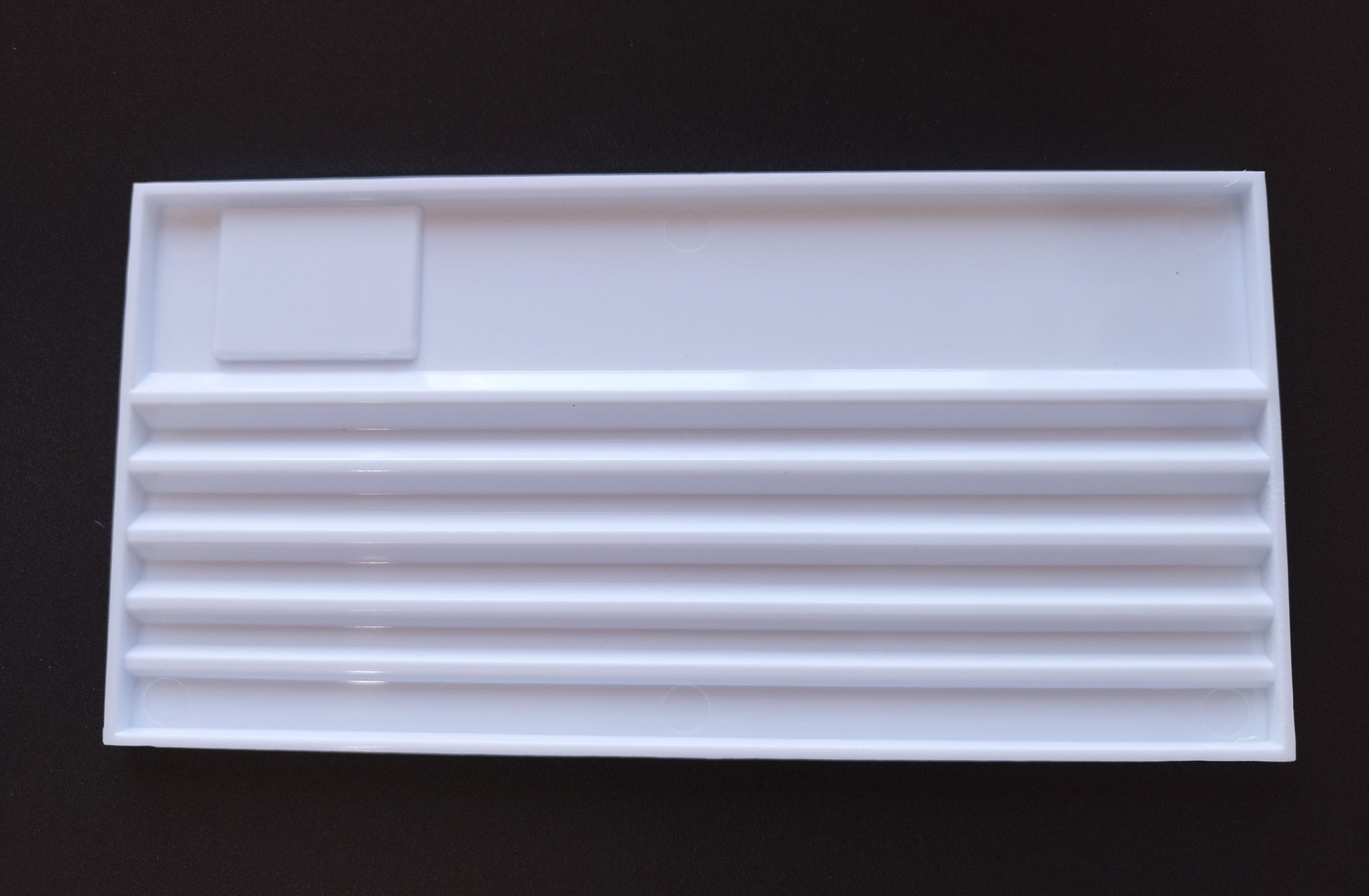 White grooved plastic tray for organizing/displaying stones (20,1 * 10 * 0,7 cm)